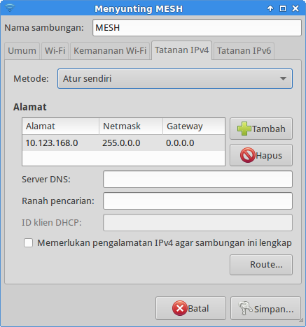 Ini adalah dokumentasi membuat jaringan MESH dengan OLSR yang disampaikan pak Onno W. Purbo di acara Festival Desa TIK 2014 di Desa Tanjungsari, Kecamatan Sukahaji, Majalengka, Jawa Barat. Festival tersebut berlangsung selama 2 hari, yaitu pada tanggal 26-27 September 2014. Salah satu kelas favorit saya adalah kelasnya pak Onno W. Purbo. Ada beberama materi yang beliau sampaikan dalam kelas tersebut, di antaranya yaitu IPv6, Membuat Jaringan WiFi untuk Pedesaan, dan Jaringan MESH dengan OLSR.