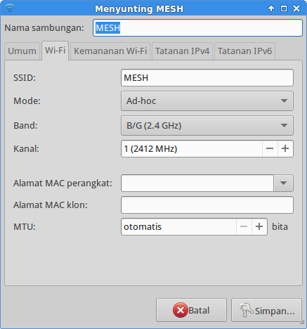 Klik tambah, lalu pilih WiFi, buat WiFi dengan konfigurasi seperti ini :